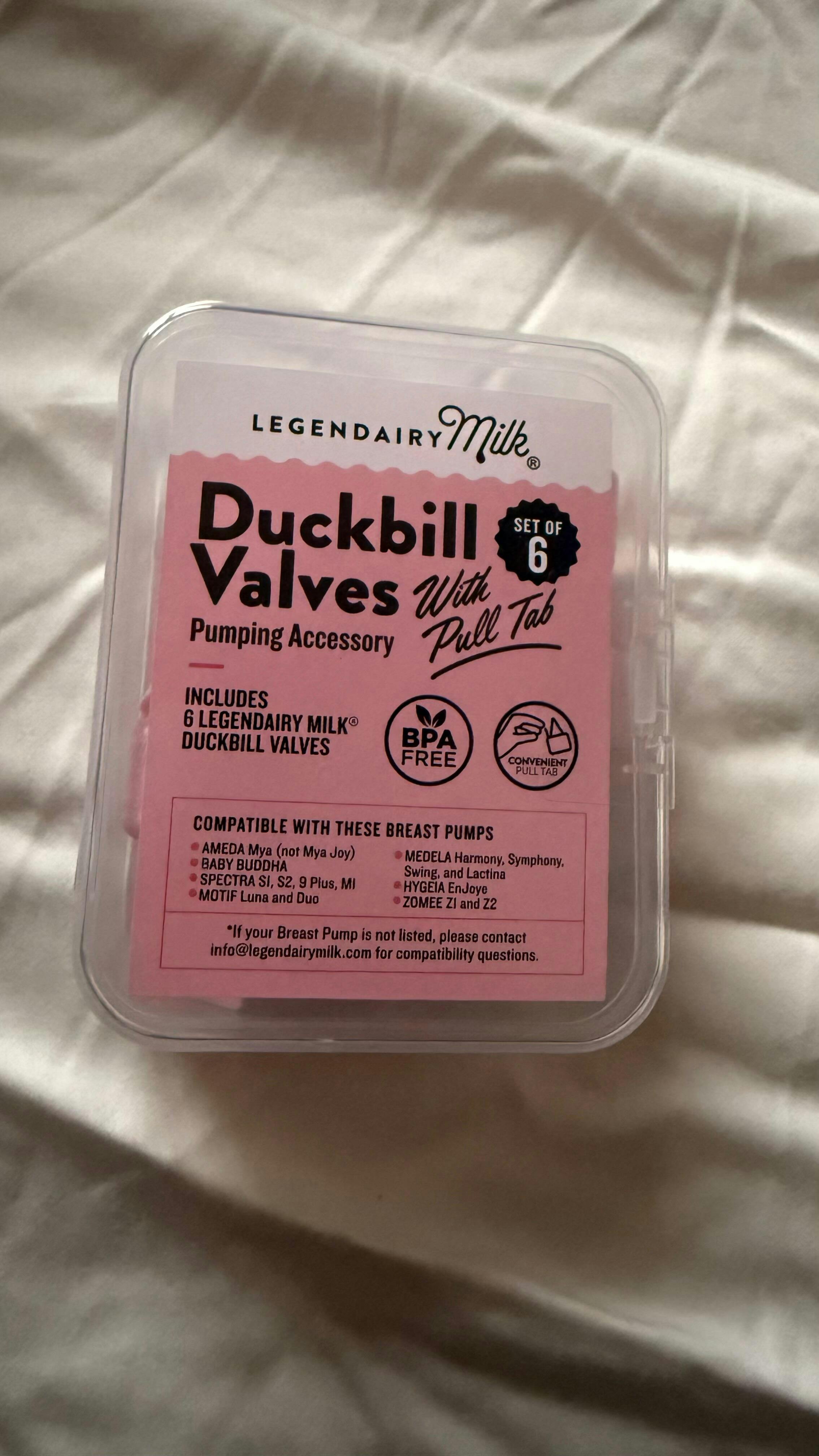 The duck bill valves were a great purchase - those sold elsewhere doesn’t have a pull tab and this was extremely helpful for me to try to remove the excess milk caught in the valve without contaminating the milk itself. The pull tab also made it much easier to remove the valve for cleaning.